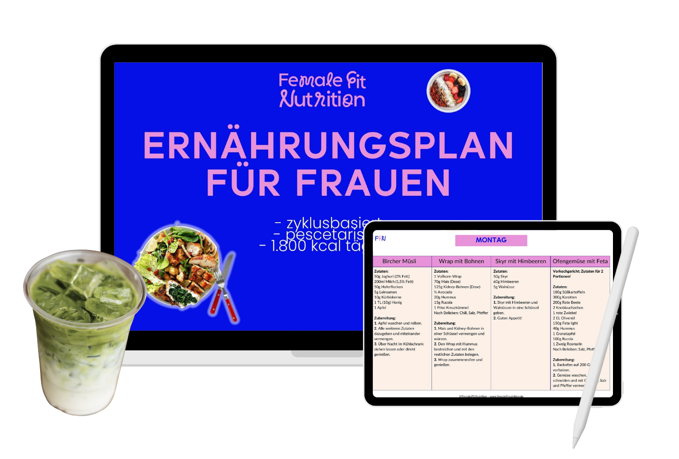 Alle Mahlzeiten sind auf die Bedürfnisse von Frauen zugeschnitten. Mit ca. 1.800 Kalorien täglich schaffst du die ideale Basis für deine Transformation.